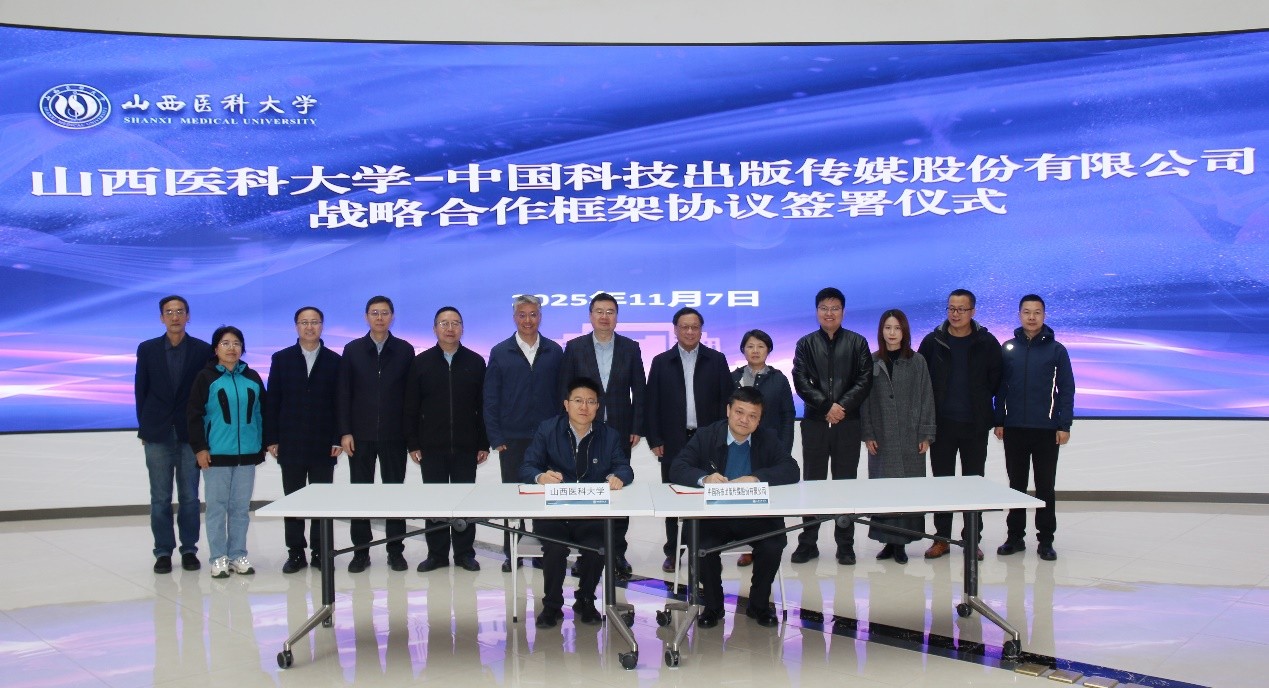 11月7日上午, 山西醫(yī)科大學(xué)—中國(guó)科技出版?zhèn)髅焦煞萦邢薰緫?zhàn)略合作框架協(xié)議簽署儀式在山西醫(yī)科大學(xué)圓滿舉行,雙方攜手開啟共筑學(xué)術(shù)高地、服務(wù)醫(yī)學(xué)創(chuàng)新的新篇章。